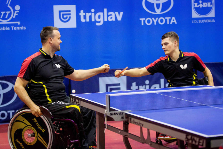 Bei den Herren der WK 5 reichte es heute gegen Frankreich hingegen nicht zu Gold. Valentin Baus und Jan Gürtler unterlagen Nicolas Savant-Aira und Alexandra Delarque mit 1:2. Der Knackpunkt war das Doppel, welches mit 0:3 verloren ging. Zwar konnte Baus mit einem glatten Sieg gegen Delarque den Ausgleich erkämpfen, doch Gürtler, der im Einzel in der WK 3 startet, hatte dem Vize- Europameister der WK 5, Savant-Aira, im entscheidenden Einzel schließlich nicht genug entgegen zu setzen.