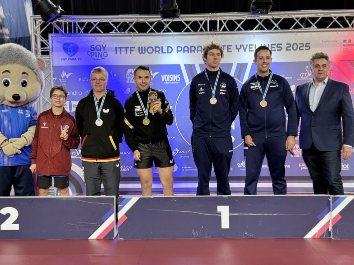 Für den dritten deutschen Goldmoment in Frankreich sorgte Thomas Schmidberger in der Wettkampfklasse 3. Er behauptete sich gegen den US-Amerikaner Jenson Van Emburgh mit 3:1 (11:8, 6:11, 11:7, 14:12). Für Thomas Brüchle hingegen war im Viertelfinale gegen den Iren Colin Judge Schluss (1:3).